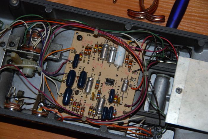 Ami a pedált illeti, szép sárga, négy potméter, amelyik mindegyik működik, bár elég vacak állapotban vannak. Kis sercegés itt, reccsenés ott, van amelyik poti szorul, a másik meg túl könnyen jár, de hát ez van - a hang úgyis a lényeg. A hang pedig kétség kívül ismerős.