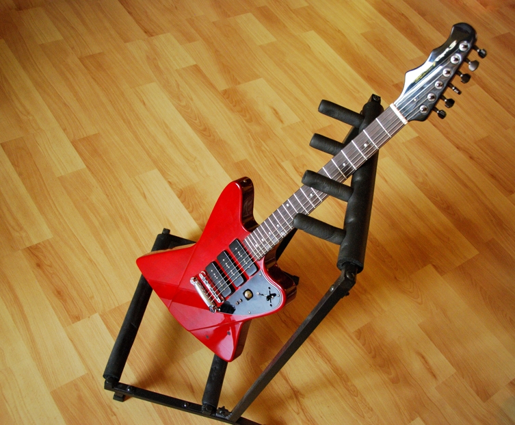 Aztán ott van az alakja is. Sosem rajongtam a formagitárokért, amik nem a klasszikus vonalon mozogtak. Nem tudom, hogy miért, de nem gondoltam sosem úgy, hogy a zenésznek a hangszer alakján keresztül kell kifejeznie önmagát. Én teljesen el lettem volna a strat-lespaul-es335 stílusban gyártott hangszerekkel, mivel azokat ismerem is, és a többségnek is jól beváltak. Erre tessék, ez a gitár aztán mindenre hasonlít, csak az előbb felsoroltakra nem. Mindettől függetlenül egy roppant vagány hangszer, aminek a formája valahol rendbontó is, meg klasszikus is, az biztos, hogy nekem tetszik, még így fejrefordítva is.