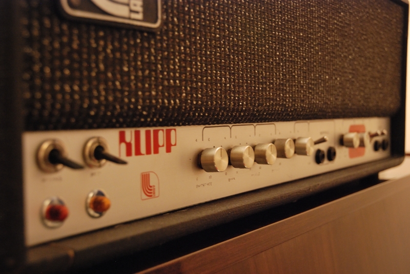 Az már az otthoni kipróbálás során kiderült, hogy a hangerő-problémáknak vége, mert ez a erősítő akkorát szólt, hogy ihaj. Ennek az oka kettős: egyrészt a 60W az nem 40W, másrészt pedig a ládában található hangszórókból is négy van, nem kettő, még ha a hatásfokuk éppen akkora is (96,1 dB), mint a HajráPeti Deluxe Jensen-eié (de szép szó :)). Az első próbán meg is örültek a zenésztársak, hogy végre nem kell többé küzdeni a gitárosért, hogy hallják. Ami pedig szintén nem mellékes, hogy gitár bedug, és kész a hangzás, nem kell torzító, meg hókuszpókusz, mint a nem erre tervezett Fender elé. Ezidőtájt még a gyári P90-ek voltak a Fret King-ben, de azok is meghajtották viszonylag jól az erősítőt. Bár a Klipp torzítása mai füllel ódivatúnak lenne mondható, mégis van benne valami erőtől-duzzadó-szájszélből-rád-vicsorgós karakter, ami nagyon egyedi. Ez pedig tökéletesen tolmácsolta a K-Csoport által akkoriban játszott SexAction slágerek dörtirokkjaihoz szükséges dögöt. És mivel megcsináltattam az effekthurkot is, így minden szükséges effekt teljes pompájában szólalhatott meg. Az már a sors sajnálatos fintora, hogy csak szűk egy évet teljesíthetett a zenekar berkein belül az erősítő, mivel a K-Csoport 2014 nyarára átmenetileg frontember nélkül maradt, plusz költözni is kellett, ahol a kisebb próbaterem már nem bírta el a (viszonylagosan) kihajtott 60W-os fejet.