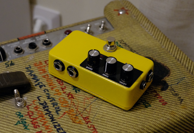 Így kezdtem el használni, és a fő torzítómmá lépett elő a kis sárga masina (az Origin Cali kompresszorral). Az emlékeimben élő ME-8 hangot nagyon jól hozza, érezhetően minőségi módon: a hangkép részletes, a potméterek jó tartományban szabályoznak, és minden drive szint jó, használható hangzást hoz. A lábkapcsoló működése csendes, hangtalanul kapcsolja az effektkört is, az elhelyezése kicsit talán közel van a kezelőszervekhez, meg kicsit billegős is lett, de pedalboard-ba ragasztva sok gondot nem okozott. Az eredeti OD-2-höz képest szépen muzsikál a hagyományosnak számító PSA adapterekkel is, úgyhogy azt hiszem, hogy a célt elértük - elkészült az első Peti-signature overdrive :)