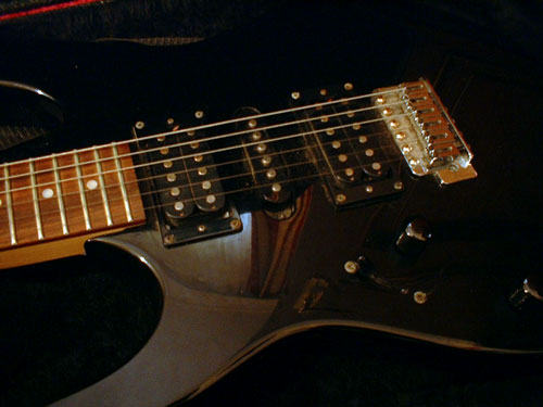 Ezt a hangot a gyári vintage single coil hangszedők nagyon jól átadják, igaz, elég alacsony jelszint mellett. A hangszerrel érkezett Seymour híd-hangszedő viszont csalódás volt, nekem túl vékony és gyenge volt a hangja, pedig próbáltam mindenféle beállításokkal. Szerintem érezte a hangszer is, hogy nem sokáig maradnak benne a gyári hangszedői, és ez pár hónapnyi használat után be is következett :). Nekem mindig a gyakorlati megközelítés az első, ezért hát próbáltam valahogy a Pannonium hangzásába beleilleszteni a gitárt. Hát az nem sikerült, mivel egy sokkal testesebb, mélyebb, és humbucker-szerű hangra lett volna szükségem. Már régóta mozgatta a fantáziám az aktív hangszedők világa, így aztán elkezdtem EMG-k után kutatni a neten. Mondanom sem kell, rá is akadtam egy komplett SA-szettre, amire gyorsan lecsaptam. Ezek a hangszedők még AlNiCo mágnesesek, és single coil felépítésűek, tehát hordoznak valamicskét magukban a hagyományos 'vintage' hangzásvilágból, viszont már aktívak, ami azt is jelenti, hogy egyrészt elem kellett a gitárba (ezt sosem tudtam volna korábban elképzelni, most mégis így jártam), másrészt pedig az járja, hogy ha EMG, akkor METÁL. Ez utóbbi állítás nyilván nem igaz, ezekre a hangszedőkre legalábbis. Olyan mélyek és magasak kerültek elő a gitárból, amilyenre nem is számítottam! Sokkal kiegyensúlyozottabb hangjuk volt, mint a gyári hangszedőknek, és egy sokkal plasztikusabb, formálható alapkaraktert adtak. Ezt a karaktert aztán egy jól beállított EQ-val az ember olyanná tehette, amilyenné csak akarta: vintage, vagy modern hangzásúvá, esetleg valami egészen kifordítottá, különlegessé. Ez az EMG hangszedők nagy erénye, azt gondolom (a totál zajmentesség mellett!). A problémámra viszont sajnos nem nyújtottak megoldást, mivel arra a jó kis sűrű PéÓ hangzásra még mindig nem volt jó sem a nyaki, sem a hátsó pickup. Úgyhogy nagy döntés következett megint: humbucker kell a gitárba. Aktív hangszedőből nem gyártanak single méretű humbuckert (meg hát azok nem is olyan jók), úgyhogy fúrás, vágás, faragás, irány a StageShop, nomeg az EMG 89-es felezhető hamburger...