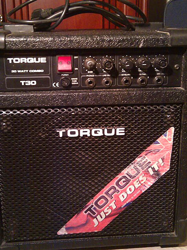 Életem első erősítője ('Torok'), a Levin-nel együtt kaptam, 40e Ft volt, szintén a győri Buxa hangszerboltból. Ez egy zárt hátú hangdobozba szerelt egycsatornás (csak tiszta) erősítőből, és egy asszem 10"-os tányérból állt. Az erősítőnek három bemenete volt (gitár, ének, szintetizátor), magas, mély EQ, meg Master hangerő. Mivel tranzisztoros volt, a 30W elég kis teljesítménynek mondható, bár azért meg tudott szólalni dob mellett is. A hangja elképesztően sötét volt, ami szerintem a zárt ládának köszönhető: a treble kiemelés sem sokat segített rajta, a tompa, mély hang egyszerűen nem volt elnyomható. Ez eleinte nem nagyon zavart, később már jobban, de azért az effektekkel lehetett javítani rajta. Igazából sokat nem lehet róla mesélni, az Alef-fel végig ezt használtam, meg még a gimis zenekaraimban is: az M15 próbák alapvető kelléke volt a kis cucc. Első alkalommal bele is törtünk egy jack dugót, akkor szedtem szét életemben először, de sikerült kiműteni. Aztán még egyszer-kétszer kibeleztem, mert érdekelt, hogy milyen belülről, meg hogy mit lehet belőle kihozni (használtam egy ideig nyitott háttal is - az valamivel jobb volt), de amint az egyetemre kerültem megváltam tőle: Csercsik Dávid vette meg kemény 25e Ft-ért, ami a haveri árnak pontosan megfelelő. Nem tudom, mi lett aztán vele, ő elég sokáig használta - tanuló erősítőnek végülis jó, még akkor is, ha ma már nem pont ezt ajánlanám egy tanulónak. Ezt az erősítőmet aztán egyből a HajráPeti Deluxe követte, ami egy nagyon profi cucc, és igazán nem bánom, hogy a szamárlétra többi foka kimaradt...