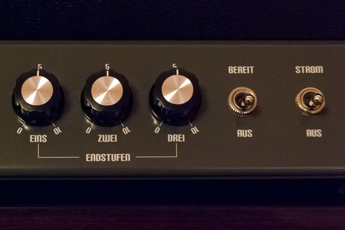 A Fender Blues Deluxe-nál elég részletesen leírtam, hogy milyen beállításokkal szoktam használni, és ezt itt sem szeretném kihagyni, főleg, hogy egy nagyon sokszínű erősítőről van szó. A hangszín-beállításokkal különösebben nem nagyon van mit foglalkozni, a Bass - Middle - Treble minden középen van, hiszen alapból is jó a hang, a Presence pedig valahol egynegyed környékén, bár ez utóbbi inkább csak a terem kompenzálására szolgál. Ezek a hangszín-szabályzók amúgy elég széles tartományban működnek, nagyot lehet velük emelni is, vágni is, de az én módszerem inkább az, hogy ha valakinek több pl. közép kell, az inkább nézze végig a hangláncot, hogy miért nincs ott az a közép, és oldja meg a problémáját ott (más hangszedő, más gitár, más torzító, más láda, stb. kell?). Egy jól összeválogatott cuccnál semmi szükség nincsen az EQ-ra, jól szól az magától is. Ennél fogva a Klipp-nél (ahogy a HajráPeti Deluxe-nál is) egyetlen potméter marad, amit tekergetni lehet: az a hangerő. És itt érkezünk el arra a pontra, amiről az összes hangszeres fórum szól, amiről a szakújságok cikkeznek, amit mindenki keres-tanul-imád-fikáz: a hangerő-poti, ami tekinthető akár az erősítő esszenciájának is. Hogy miért? Mert ebben vannak a legnagyobb trükkök, és ha valaki jól használja, akkor zenél az erősítő igazán. Ez azért nehéz, mert a hangerő csöves erősítők esetén minden más komponenssel, ami a hangláncban van, interakcióban áll: semmi nem úgy működik kis hangerőn, mint nagyon, más a hangszín, más az érzet, más a karakter - és ebben szerencsére a Klipp sem kivétel.