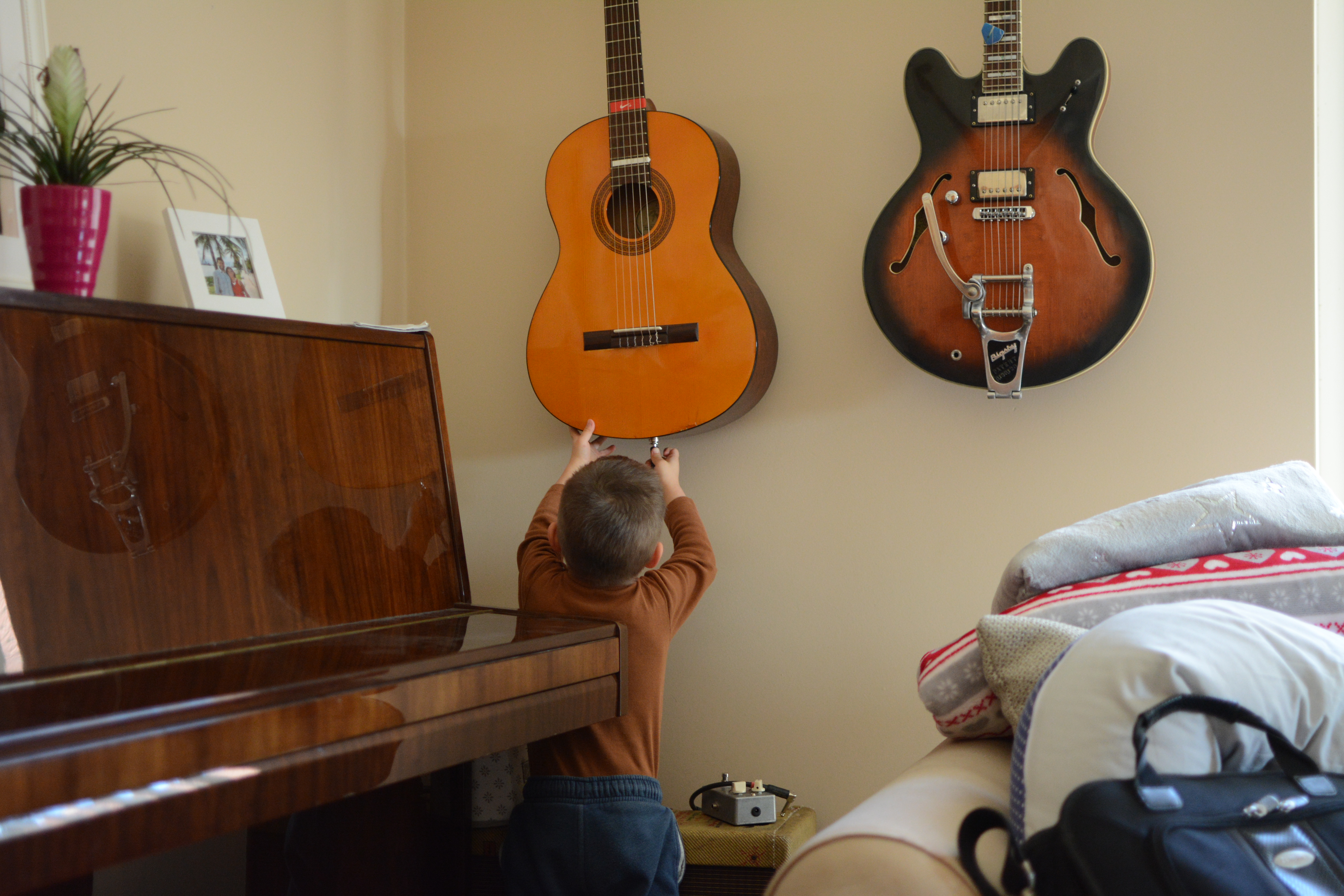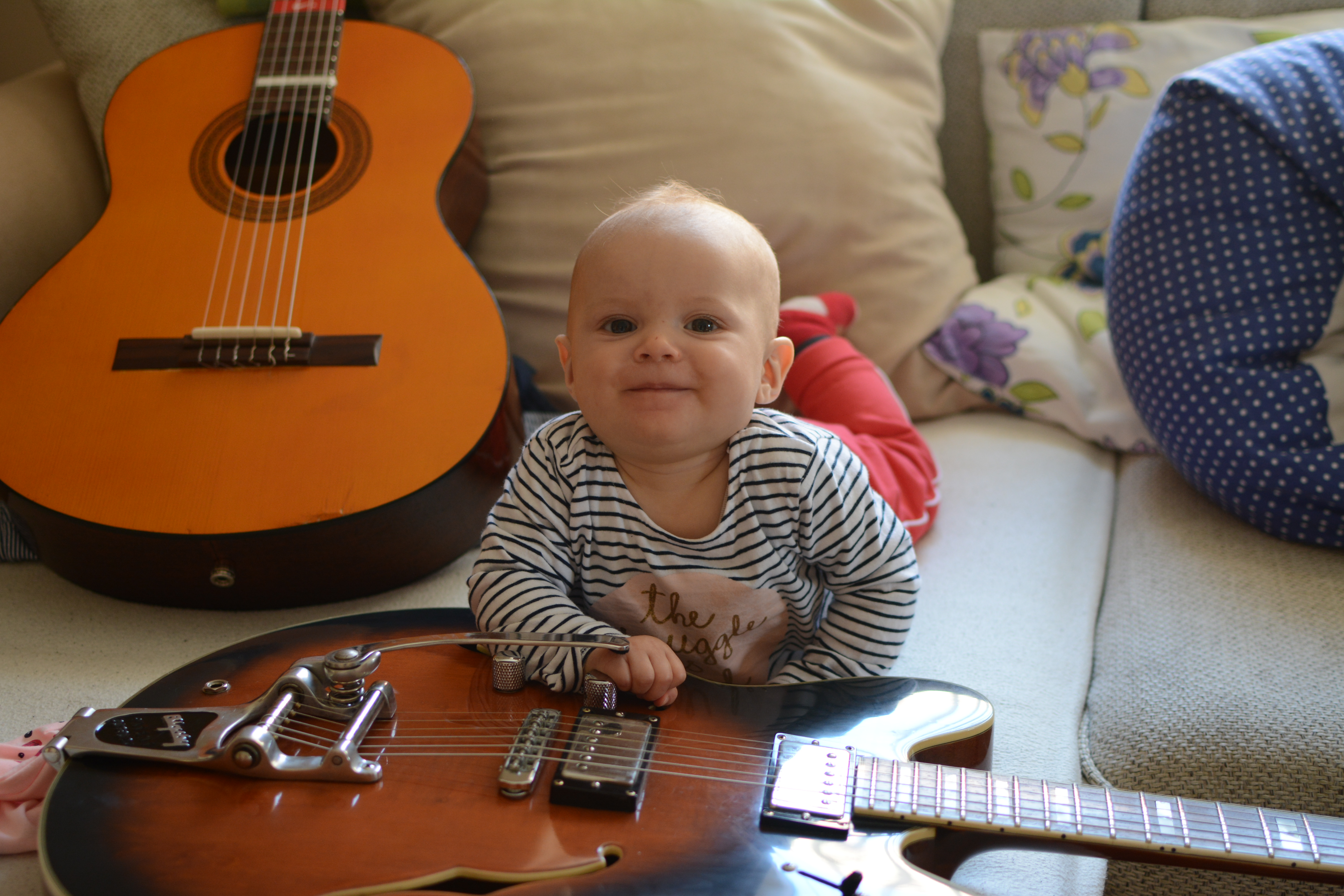 Ahogy elkezdtek jönni a gyerekek, a gitárról egyre több kép csak a szobában készült. (Mocsa, otthon)