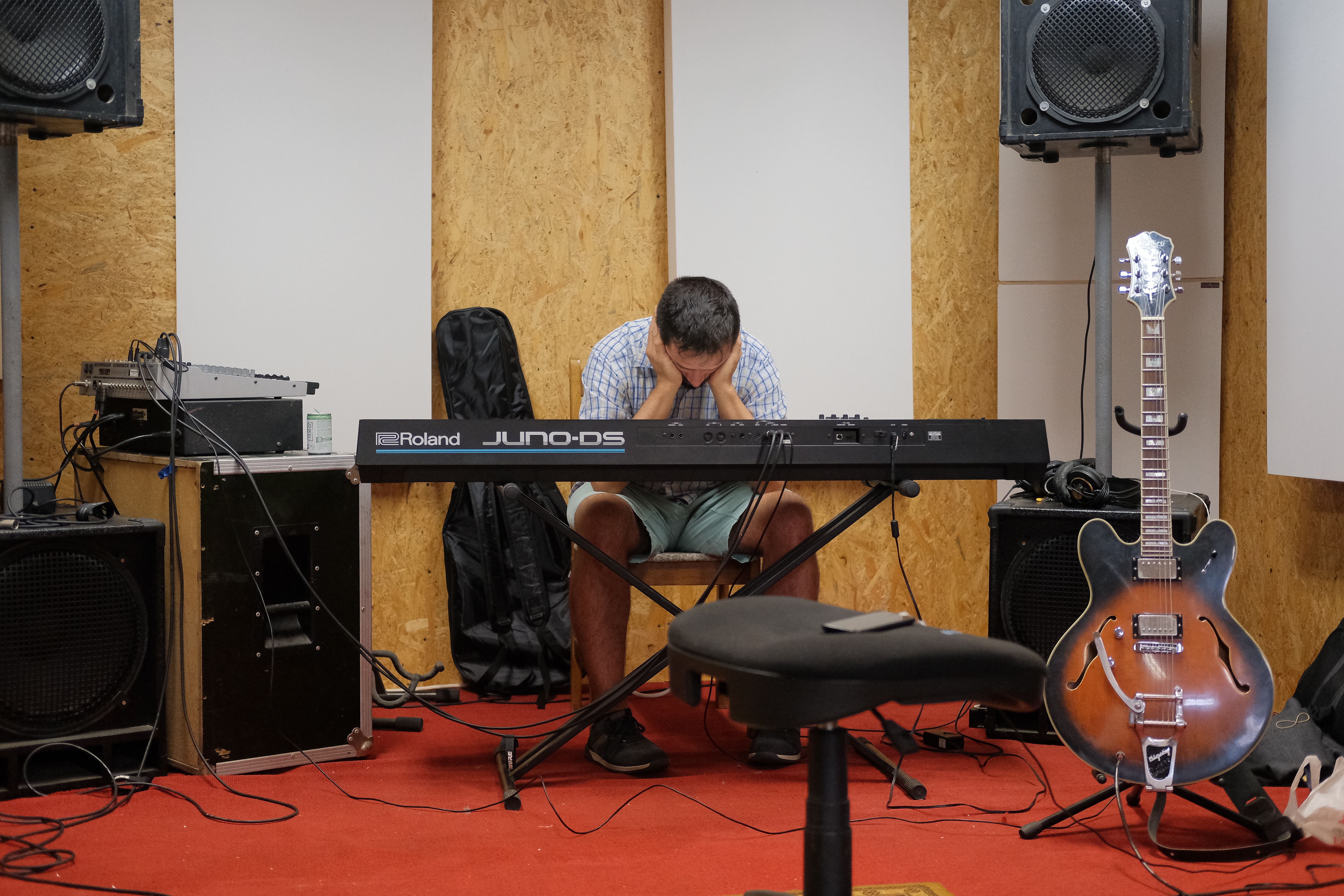 Ressentiment lemez felvétel. Már csak egy poti, egy kapcsoló, és a Bigsby. (Ete, próbaterem)